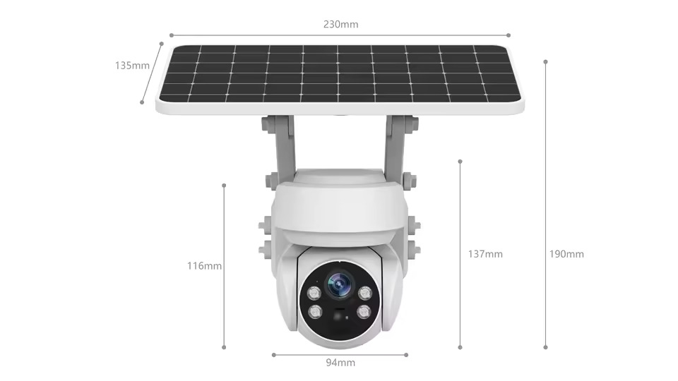 | لیست بسته بندی | دوربین IP، پنل خورشیدی، پایه، پیچهای نصب، پیچگوشتی، کابل USB، دفترچه راهنما |