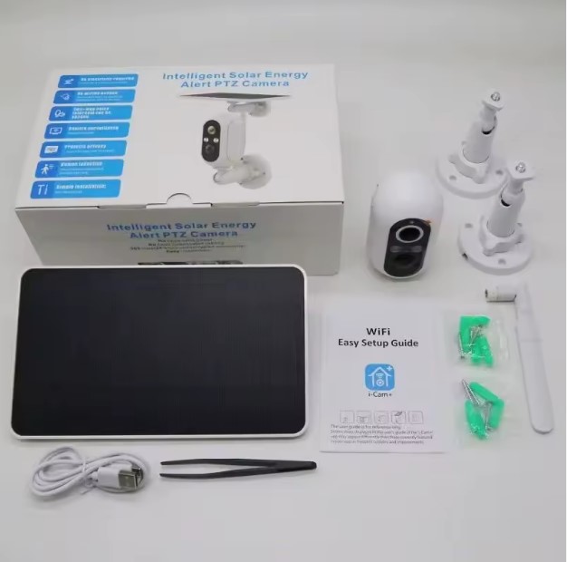 | لیست بسته بندی | دوربین IP، پنل خورشیدی، پایه، پیچهای نصب، موچین، کابل USB، دفترچه راهنما |