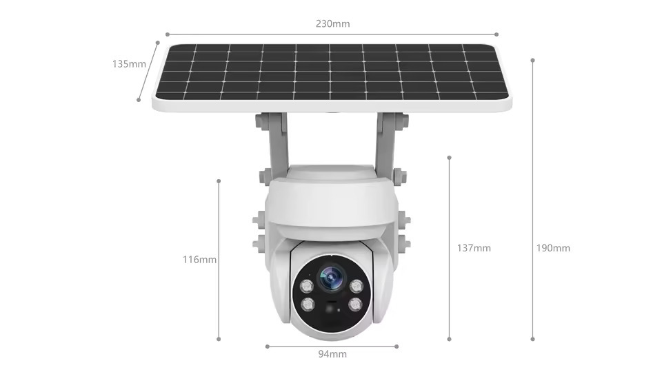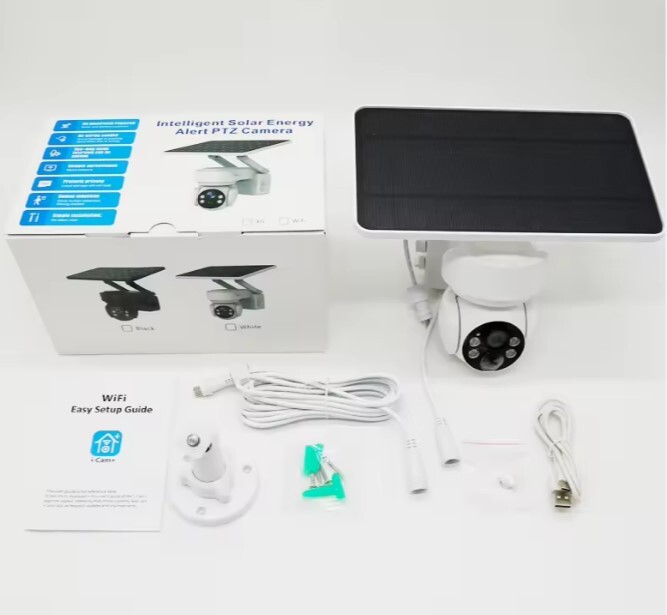 | لیست بسته بندی | دوربین IP، پنل خورشیدی، پایه، پیچهای نصب، پیچگوشتی، کابل USB، دفترچه راهنما |